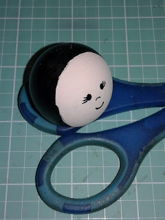 Step 1: Paint the doll head in Georgia Peach. I used a black marker for the eyes and hair - however, you can use black paint. Set aside to dry.