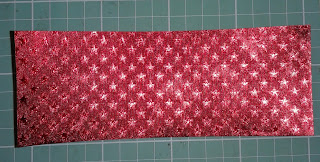 Step 8: I again took another Gold Starstruck Foil paper and repeated the steps of folding the sides in so I would have a nice clean edge. I then glued it onto the Angel's neck to cover the glue and open edges of the Ruby Starstruck Foil Paper.