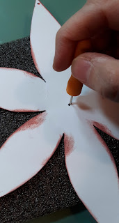 Next, I used a paper piercer to punch small holes in the ornament. One hole in the center and one on each of the petals.