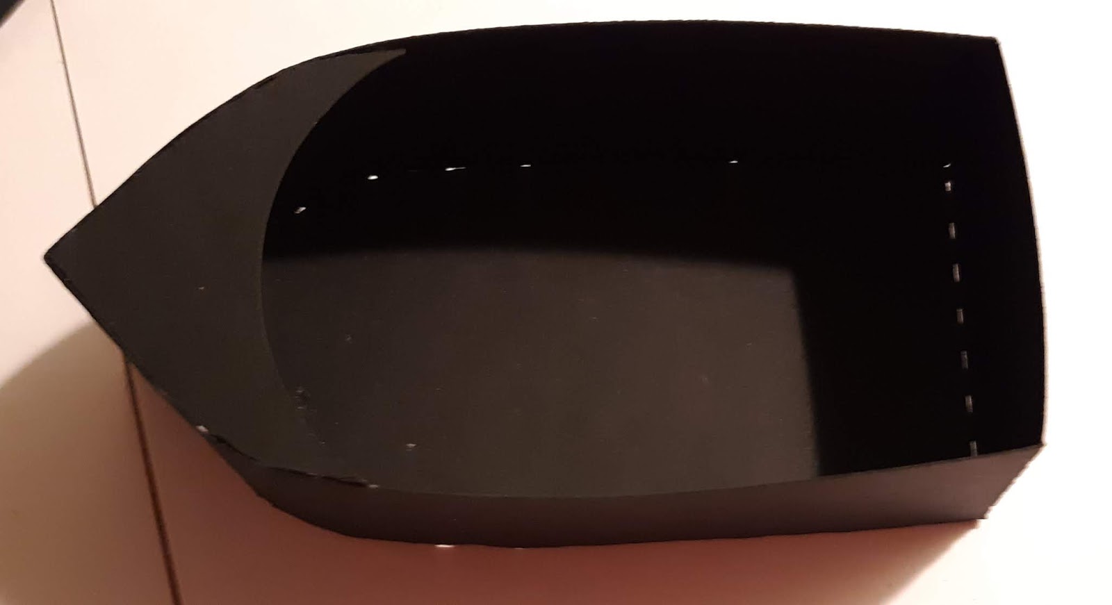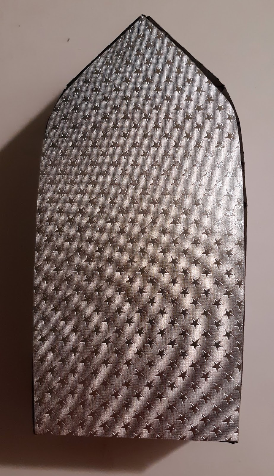 Then, I adhered the front Starstruck Silver panel to the front of the boat. Next, I adhered the Starstruck Silver panel to the bottom of the boat box. This will hide all the tabs we used to create the box.