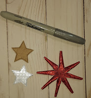 I then created the 3D star, and I covered the chipboard star with the Silver/Silver Starstruck Foil Paper. I used a Silver sharpie to color the edge of the chipboard star before adhering the Foil paper.