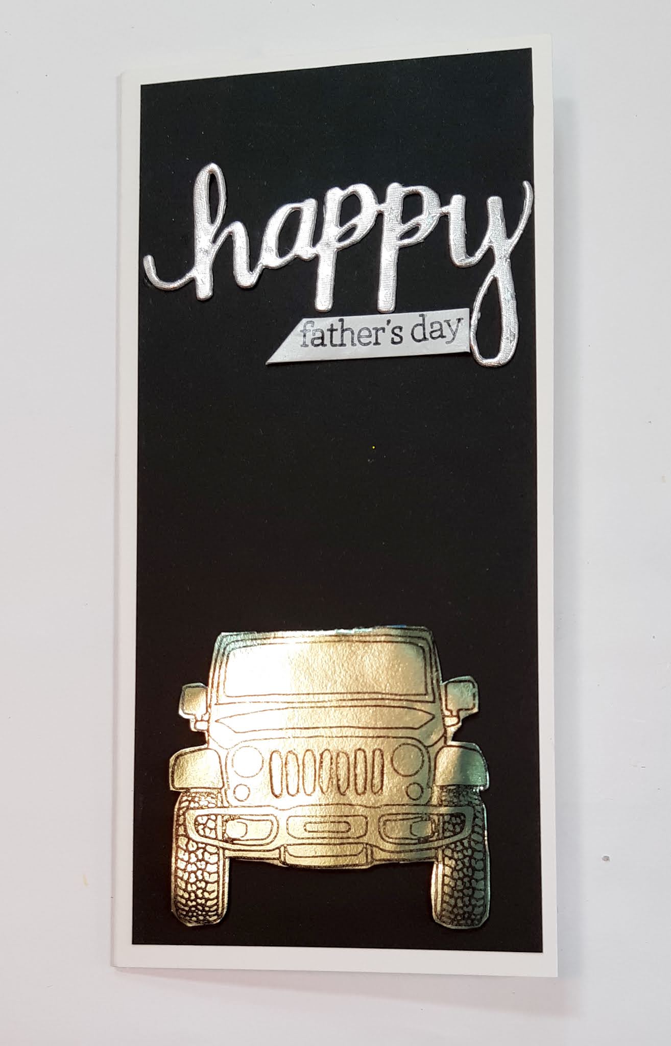 I adhered the Jeep to the card panel using s bit of low profile foam tape.
