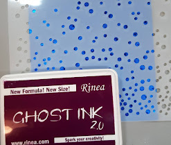 the Rinea Ghost Ink 2.0 I work the ink into the small holes of the stencil. I allow the ink to sit for a moment and then I wipe off the ink. This will leave me with a ghost effect on the
