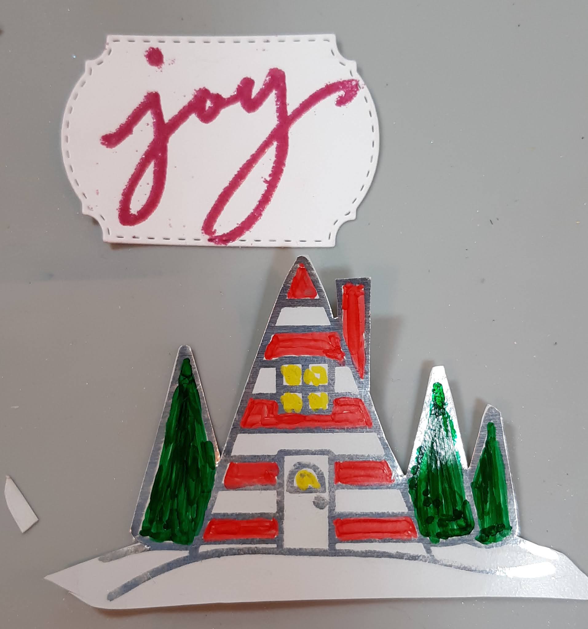 I colored the Crackerbox & Suzy Stamps: Cottage & Trees with some Copic markers. I then, ran the Crackerbox & Suzy Stamps: Cottage & Trees and