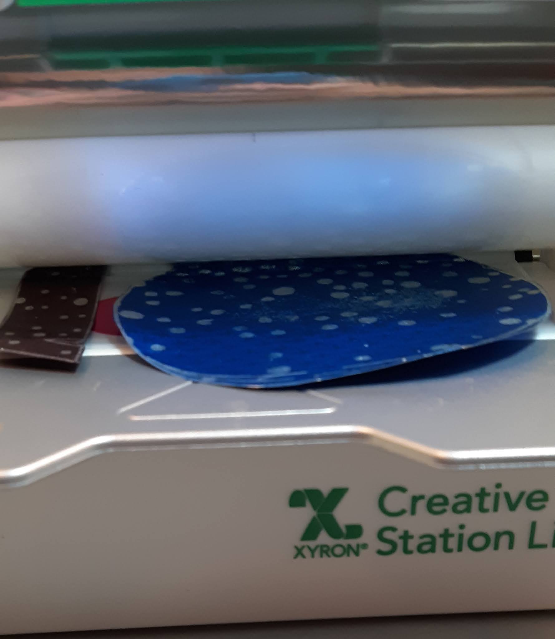 the Crackerbox & Suzy Stamps: Bowl/Globe & Cork through the Xyron Creative Station Lite. I backed the Crackerbox & Suzy Stamps: Bowl/Globe & Cork with some cardstock so that I could pop it up.