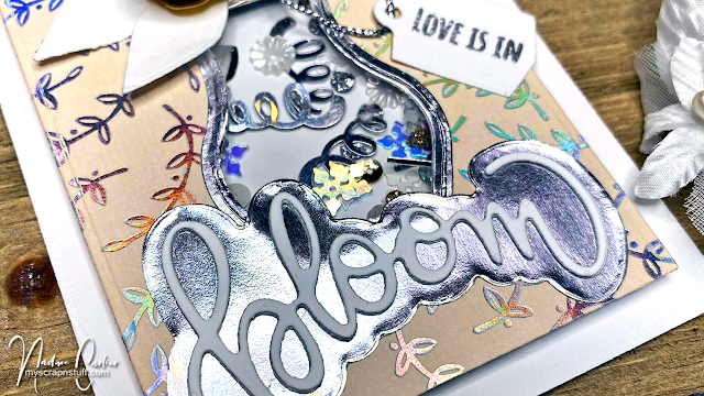 The vase die that is in the Maker's Movement In Full Bloom Stamp & Die Set makes a great shaker shape as you can see below. The title that comes in this die set is the word "bloom" and used with the stamp that says "Love Is In" makes a great sentiment for a wedding card.