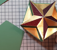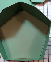 Then, I put some adhesive on the tab of lid side panels and press into place. The star shape will form once the tabs are secure.