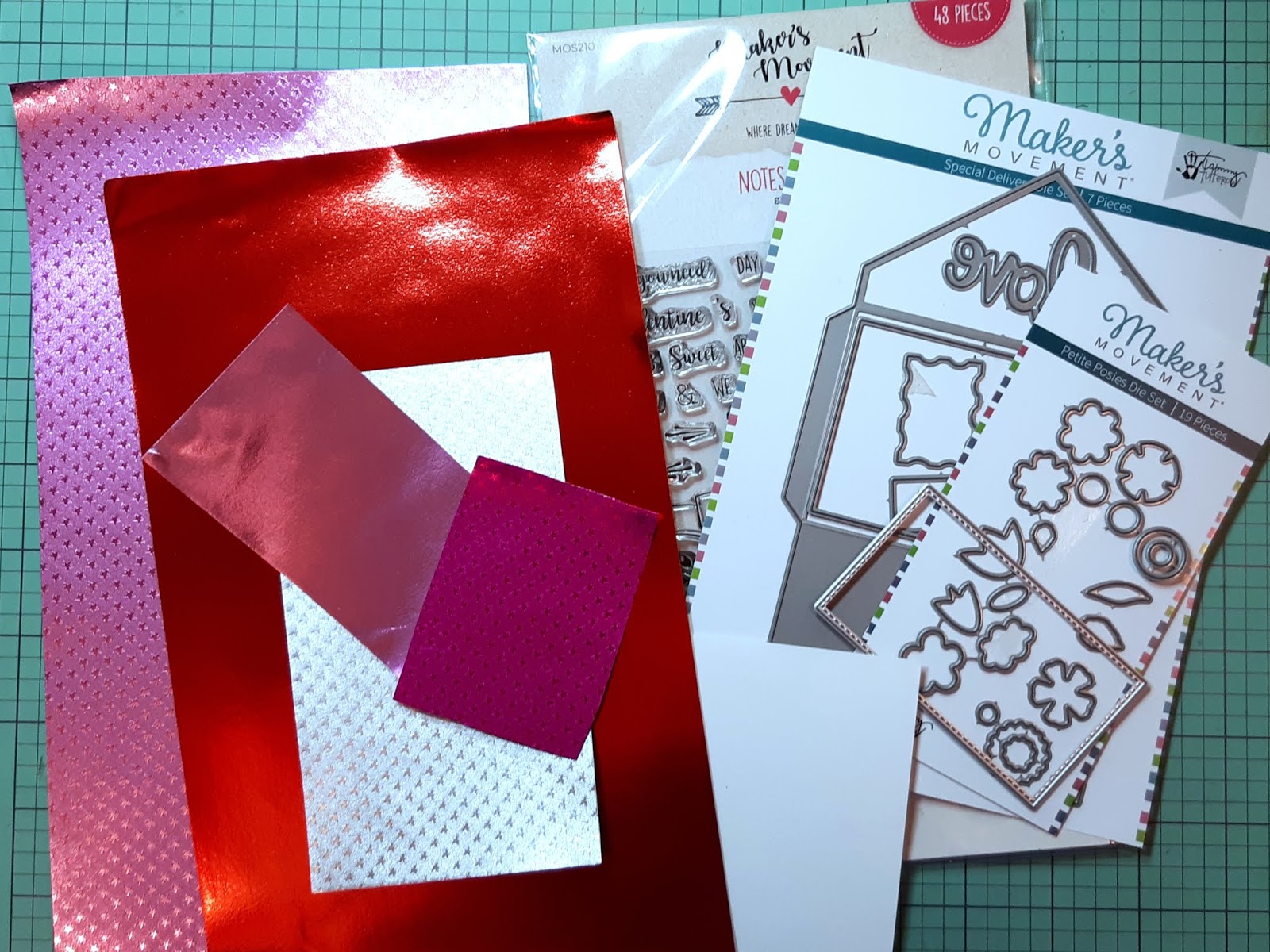 I cut from Rinea Starstruck Jade/Jade Foil Paper to the left side bottom corner.