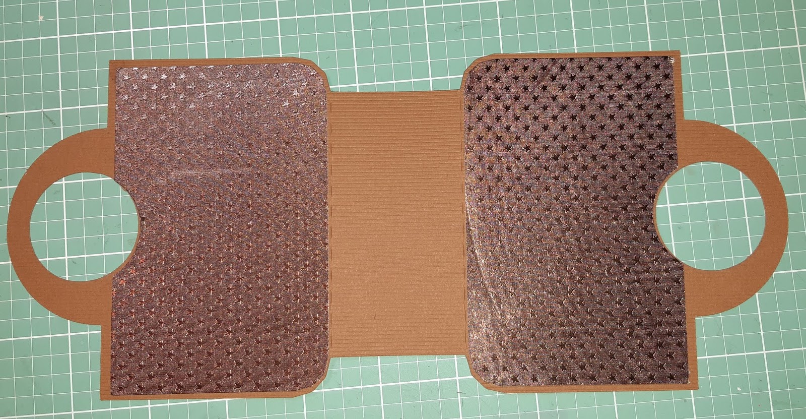 I start by adhering the Mocha/Mocha Starstruck cut panel onto the base of the tote. Then, I adhered the handles of the tote as per the directions.