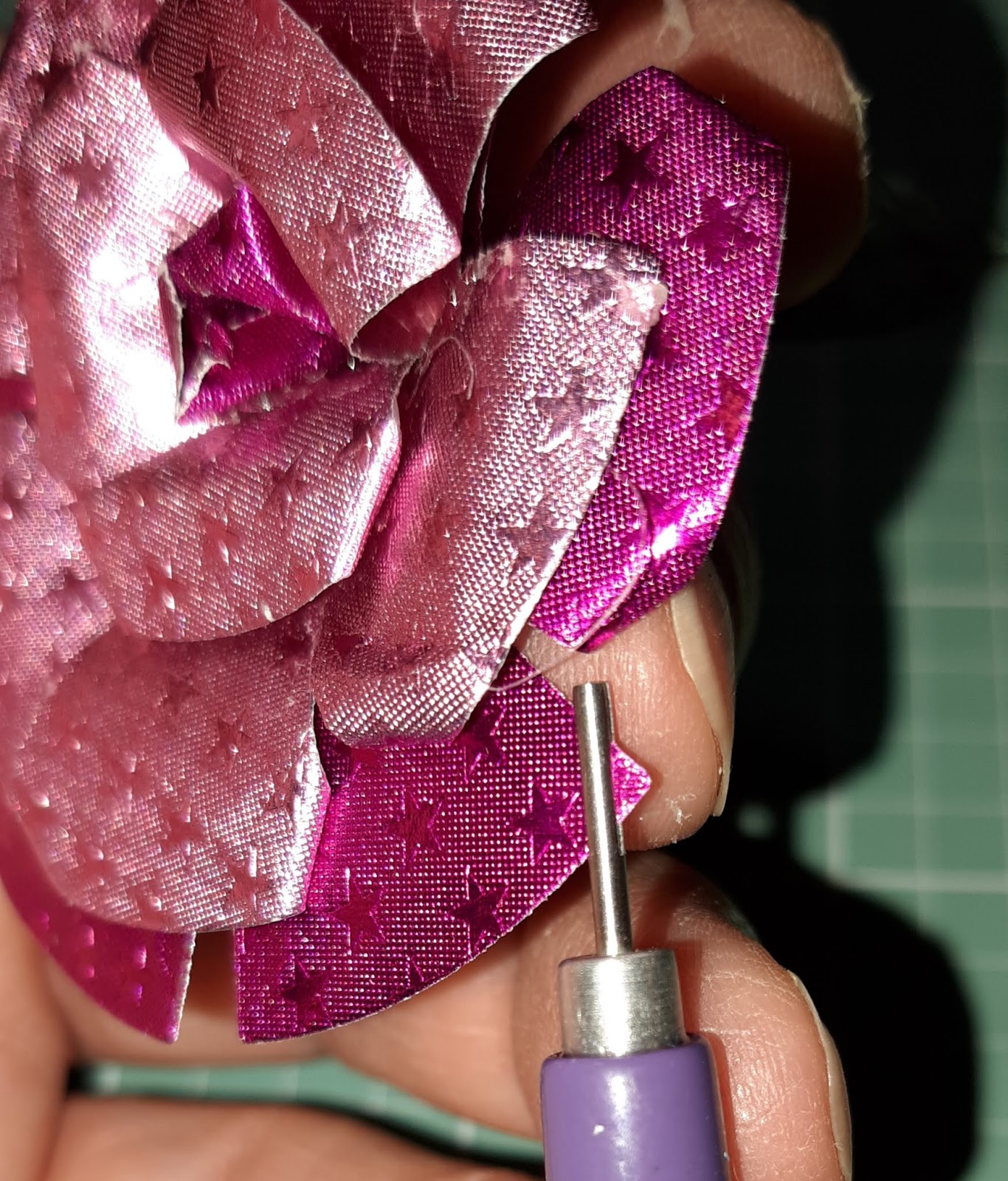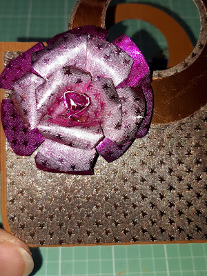 Next, I repeated the process on the other piece of the Blush Starstruck Petals. Rolling and gluing into place and layering as I go. Finally, I add the last layer which is the Fushia Starstruck Petals.