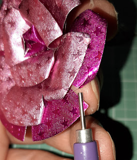 The center is created with a small piece from the Fushia Starstruck. I just rolled it and glue into place - in the middle of the three petals I just made from the Blush Starstruck.