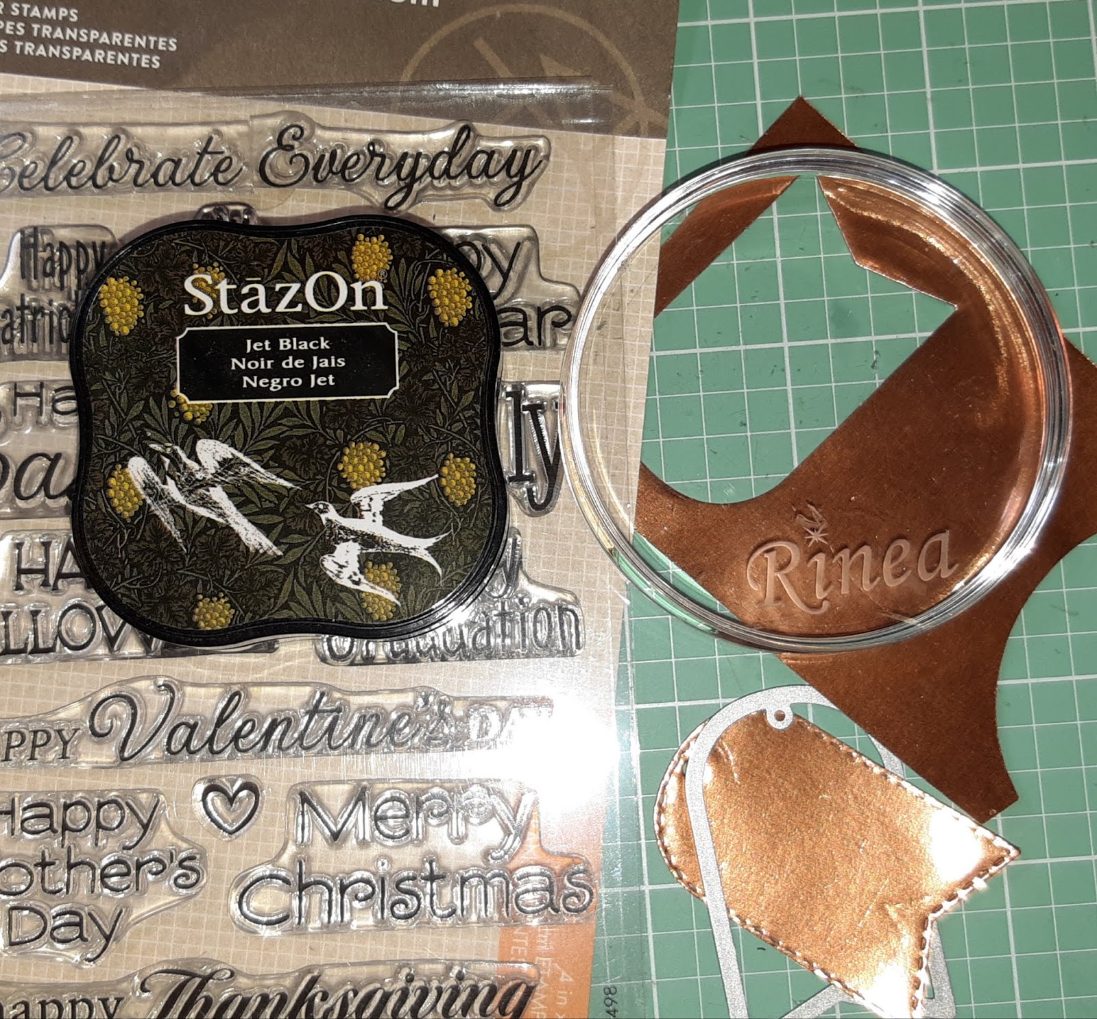 Now, for a quick tag - I die cut a tag from Marigold/Gold Glossy Foil paper. I then stamped my sentiment onto the tag using StazOn Jet Black Ink.