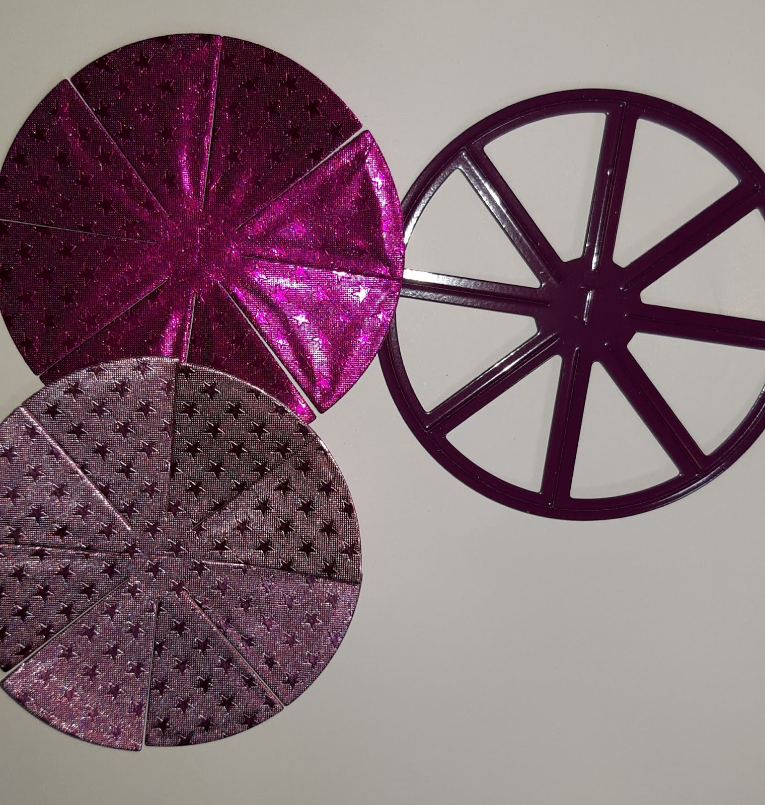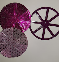 I start by trimming apart the die cut pieces as shown. I trim 3 sections from the Blush/Blush Starstruck and 1 from the Fushia/Fushia Starstruck.