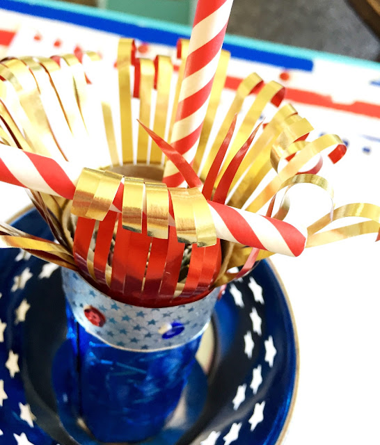 Place your rocket upside down into a sturdy container. While the glue sets, curl the fringe with a paper straw.