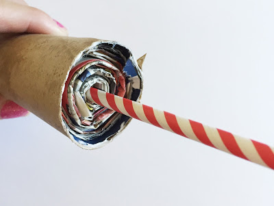 Then wrap some double sided tape at the end of a straw and roll the paper around the tape.