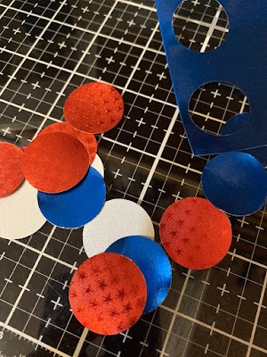 I used a 1" Circle punch to cut dots from my scrap foiled paper to make the numbers. The appropriate number of dots were added to each side of the giant dice to add the number 1 through 6.