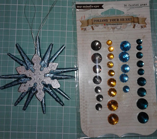 Step 7: Finishing touches: Now, turn you snowflake over and add a jewel to the center. Your snowflake is complete and ready to hang on your tree, gifts, anywhere that you want to decorate.