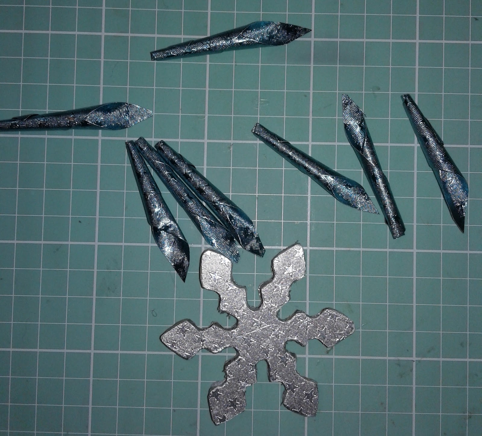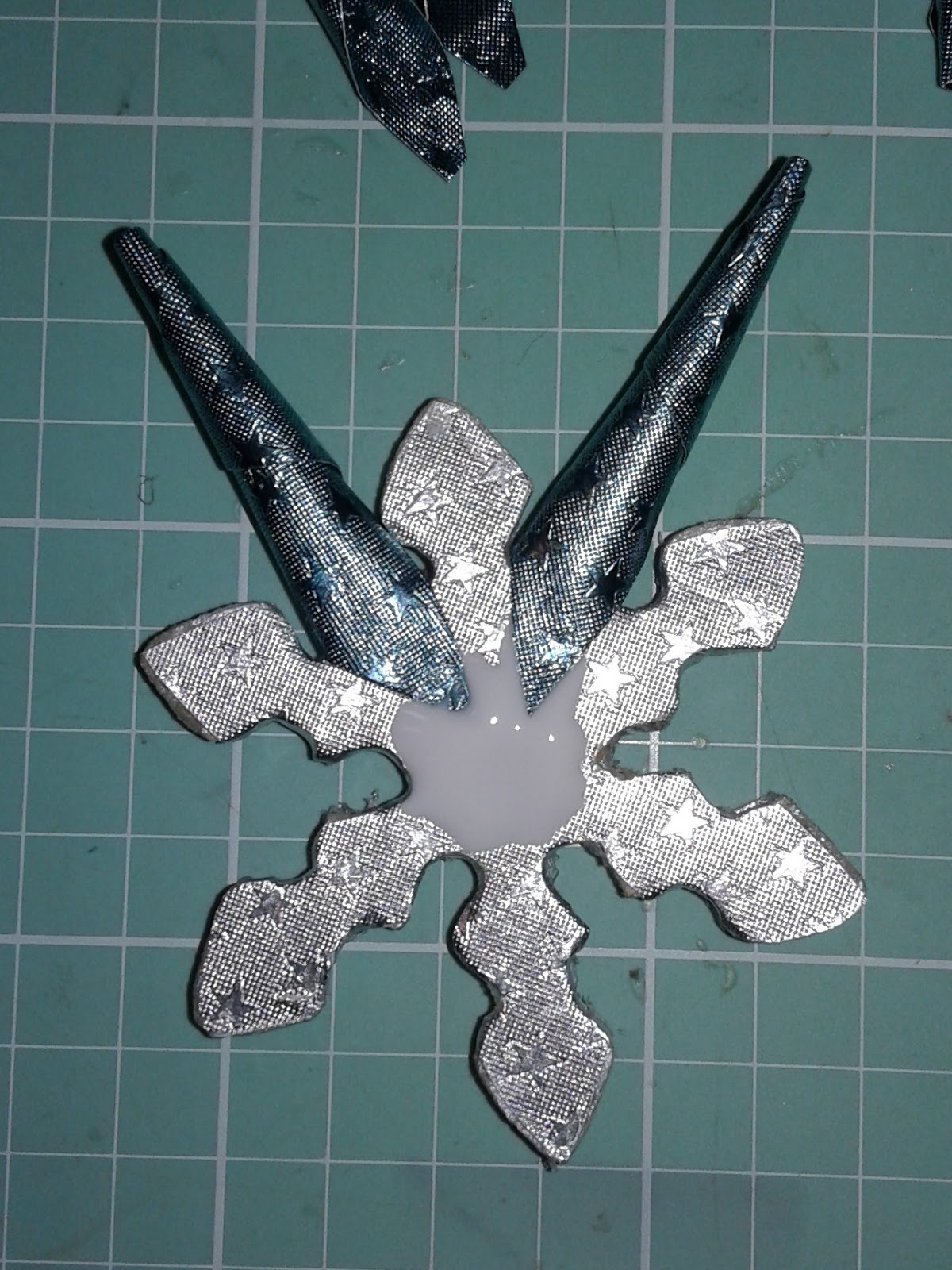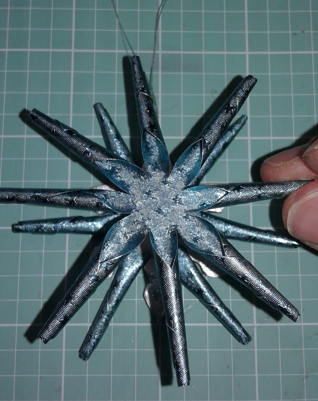 Step 6: Now, place the other rolled star onto the snowflake - this is the back of the snowflake. Make sure that the points go in between the others.