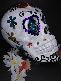 You can make this as colorful as you would like or monochromatic. It's entirely up to you. That's it you have now created a sugar skull for your Halloween decorations.