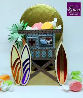 I follow the instruction provided by Simply Crafty SVGs all the files contain a PDF & YT video. When complete I filled it with the Taffy. It's a perfect summer decoration. You can gift wrap it and give it to a special someone or display it on your desk at work.
