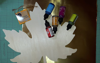 adhered the inked Rinea Glossy/Glossy Gold 12x12 Foil Paper to the leaf.